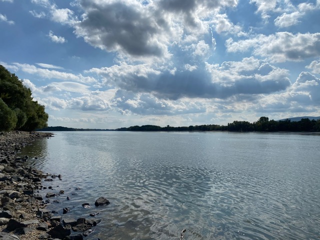 Op weg naar de auto, nog even naar het water, de schuine kant af en zo dichtbij de Donau dat het water de schoenen kon raken, een selfie met de rivier, nog even een snuifje water lucht en een blik in de verte, en weer terug naar de mooie Stad.